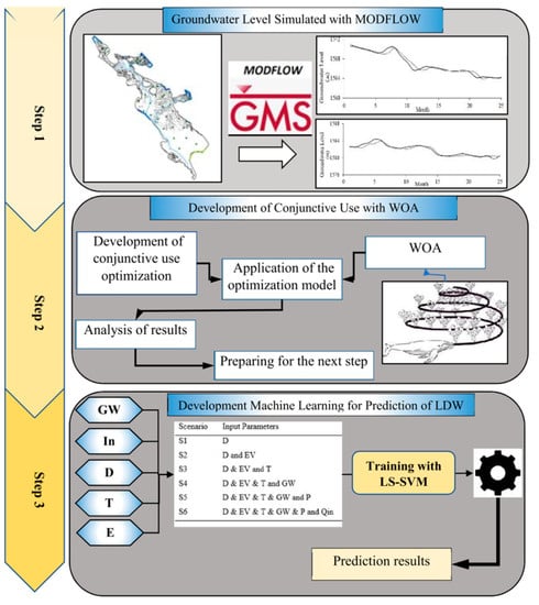 - Safavi, H.R.; Esmikhani, M. Conjunctive use of surface water and groundwater: Application of Support Vector Machines (SVMs) and genetic algorithms. Water Resour. Manag. 2013, 27, 2623–2644. [Google Scholar] [CrossRef]