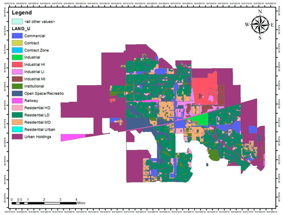 Land use describes the use of the area that will be affected due to the consequences. The affect on land used for commercial or institutional activities for the city will be much more significant compared to the impact of the same pipe failure consequences on the railway or open spaces. Land use is classified as poor, moderate, and excellent. Figure 7 gives a better view of the land use of the City of Regina. The way to access to all the tables and data of Land use of city of Regina for stormwater pipe was to intersect these two layers together to have access to the data we need.