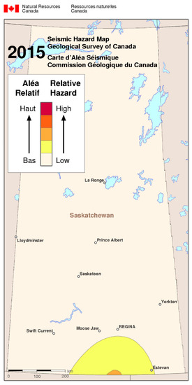 - Recent Earthquakes Near Saskatchewan, Canada. Available online: https://earthquaketrack.com/r/saskatchewan-canada/recent (accessed on 1 June 2021).