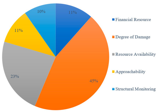 On the other hand, recovery is connected with two main factors which are repair cost and speed of repair. The repair cost depends on two attributes, financial resource to repair or replace the pipe and degree of damage [28]. Speed of repair depends on four attributes which are, degree of damage, resource availability (non-availability of pipe material during and after the disaster increase the delay time in the recovery process [10,25]), approachability towards the resource (approachability disturbance slowdowns the recovery procedure [10,25]), and structural monitoring (monitoring the stormwater pipe infrastructure regularly can give the pipe conditions and assist in diagnosing problems quickly after incidents, making the recovery process faster [29,30]).