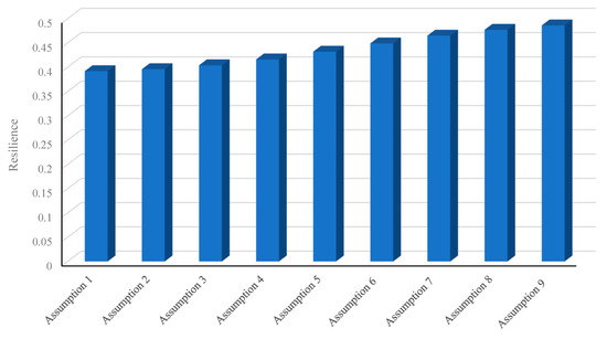 To identify critical factors for the resiliency of the stormwater pipe system of the City of Regina and to quantitatively validate the presented model, the sensitivity analysis is performed. Sensitivity analysis gives essential knowledge about how sensitive the results of the designed model are to make minor the variation in the factors by thinking of them in an uncertain way [42]. For sensitivity analysis of this research, the assumptions for reliability and recovery weights can be changed based on different scenarios in Table 12.