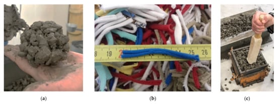- Selvaraj, R.; Priyanka, R. Study on Recycled Waste Cloth in Concrete. Int. J. Eng. Res. 2015, 4, 891–895. Available online: https://www.ijert.org/research/study-on-recycled-waste-cloth-in-concrete-IJERTV4IS090437.pdf (accessed on 26 December 2021). [CrossRef]