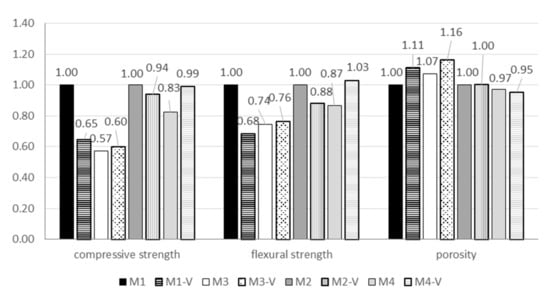 | Compressive strength [MPa] | 20.3 ± 0.7 | 13.1 ± 0.5 | 10.5 ± 0.6 | 9.9 ± 0.3 | 11.6 ± 0.8 | 12.2 ± 0.5 | 8.7 ± 0.4 | 10.4 ± 0.9 |