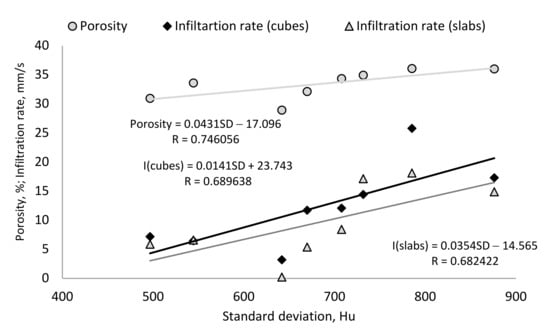 - The relationship between the standard deviation of the MSCT results and porosity, and both infiltration rates measuring methods, are established;