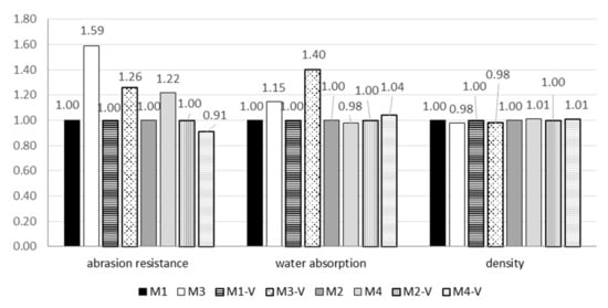 | Water absorption [%] | 7.4 | 6.3 | 5.9 | 6.0 | 8.5 | 8.8 | 5.8 | 6.2 |