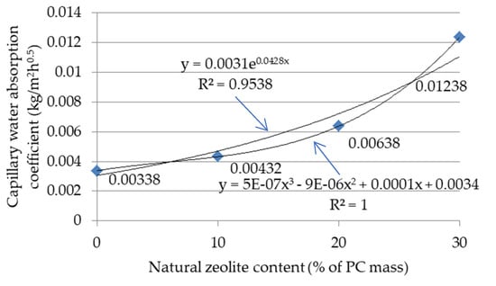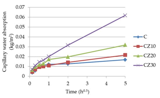 - In regard to the capillary water absorption of blended cement mortars, the recommended level of OPC substitution with NZ is up to 10%. With a rise in the level of NZ in cement mortars (up to 30%), capillary water absorption increases, and so do the values of capillary water absorption coefficients;