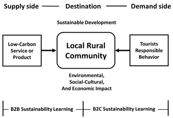 To synthesize the above findings and discussion, we noted that rural community travel can be a way for sustainability learning [58]. Figure 4 portrays a new theoretical contribution constructed in our case study [59].