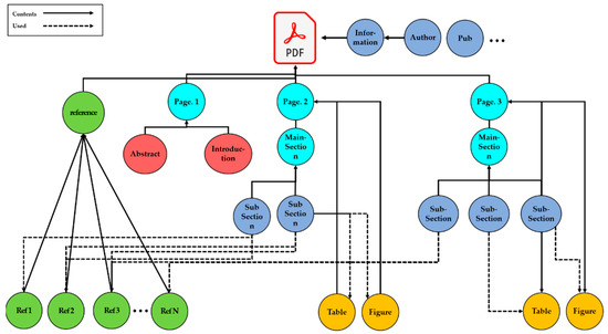 Semantic elements extracted from a document have a hierarchical structure from the main section to the sub-section. However, it is essential to consider when figures (or tables) located on different pages can be cited more than once from different pages. Therefore, the proposed SEKG structure maps extracted semantic elements to a network node rather than the hierarchical structure, considering various relationships connecting figures, tables, and references.