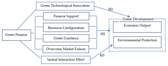 The essence of the relationship between green finance and green development is the relationship between finance, the economy, and the environment. Green development emphasizes the unification and coordination of economic development and environmental protection. Green finance refers to economic activities concerning environmental improvement and resource conservation, which promotes the development of financial products such as green credit, green bonds, and green stocks through policy mechanisms to gain environmental, economic, and social benefits. It is important to accelerate the green development of the economy to support the construction of ecological civilization. Specifically, green finance has an effect on green development, mainly through the following three ways: