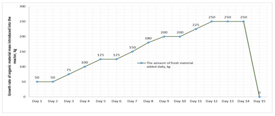 The loading rate of organic material mass that was introduced into the composter is depicted in Figure 4.