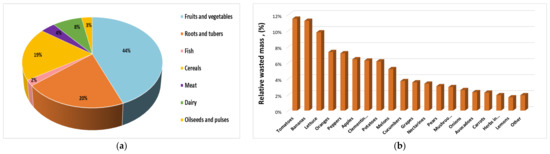 Assessment of the food waste generated in supermarkets: (a) classification of the main types of food waste; (b) identifying the most common fruits and vegetables found in the mass of generated waste.