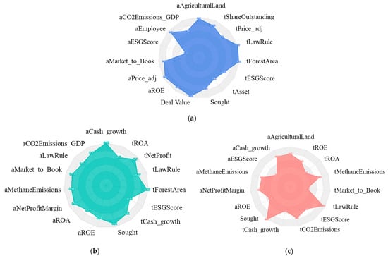 To certify our four hypotheses above, we introduced various characteristics of the indicators for features related to sustainable development. The feature contents include the environmental, social and governance characteristics of the nation of the acquirer and target, financial status of the company, the scale of the companies and some descriptive code of the companies (as shown in Table A1 in Appendix A). The financial statement information for the public firm was also considered. Our variables’ set contains three levels of the variables covering the country-level, deal-level and firm-level indicators to reflect the ecosystem’s complementation and the co-evolution potential of acquirer and target companies.