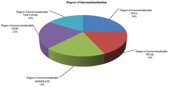 From the analysis depicted in Figure 4, and according to the surveyed SMEs, only 38% of the SMEs in the Spanish manufacturing sector apply a high and very high degree of internationalization.