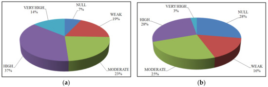 Regarding the degree of collaboration, and as collaborative processes are established with partners within the same network, enterprises’ degree of collaboration is analyzed: (i) generally for all the partners (Figure 5a); (ii) specifically with international partners (Figure 5b). The different degrees of collaboration include: (i) “Null” degree of collaboration, where collaborative relationships are not established during the processes that take place among network members; (ii) “Weak” degree of collaboration, where collaborative processes are rarely established among network partners, (iii) “Moderate” degree of collaboration, where some processes are collaboratively performed and in-formally established between partners; (iv) “High” degree of collaboration, where collaborative relationships are established with a wide range of members and are carried out frequently; and (v) “Very High” degree of collaboration, where: collaborative processes are established with all network members and are carried out very often. Generally, for all the partners, the degree of collaboration is high or very high for 51% of the surveyed SMEs. The degree of collaboration specifically contemplates international partners (Figure 5b), and is high or very high for 31% of SMEs. From this descriptive analysis, it was concluded that degree of collaboration is on rather a small scale in the Spanish manufacturing sector, especially regarding international partners.