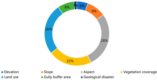 Based on the single-factor analysis of high sensitivity regions in the research site, it can be seen that the main factors leading to high sensitivity are slope aspect, vegetation and land use. Although the weight assigned to slope direction is only 0.0332 in our calculation due to its large area, a large number of high sensitivity aspect regions are distributed in the highly sensitive area (Figure 11).