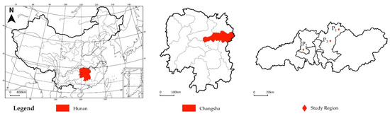 Three regions, P1, P2, and P3 in Changsha, Hunan Province, China, were selected as the evaluation objects (Figure 1).