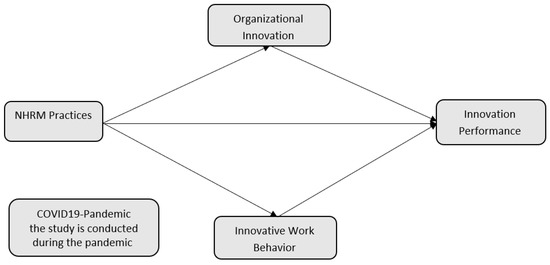 To this end, the current study proposes the model that presents the relation interplaying through the two mediators, organizational innovation and innovative work behavior between NHRM practices and innovation performance during the COVID-19 pandemic. As shown in Figure 1.
