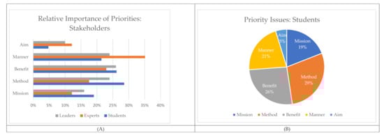 (A) Relative importance of priorities for stakeholders and (B) priority issues for students.