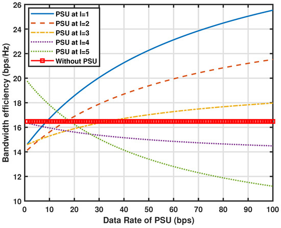 The cost is paid in terms of bandwidth loss which is incurred by adopting a fake user called as a pseudo secondary user (PSU). The loss is higher when the PSU occupies a sub-channel with higher SNR values, further reducing throughput reduction as shown in Figure 7 and Figure 8 and the discussion hereafter. Since the PSU does not participate in the bandwidth efficiency of CBS, therefore, as the PSU transitions to the high-quality sub-channel, the data rate that would otherwise be utilised is wasted by adopting the PSU to deceive the jammer.