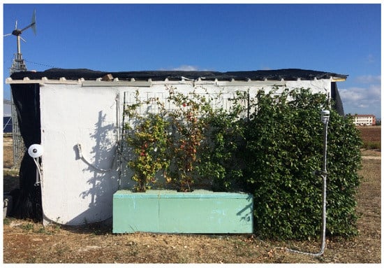 The experimental GF was built at the experimental centre of the University of Bari (Figure 1). The prototype is placed in Valenzano (Bari, Italy), at latitude 41°01′ N, longitude 16°54′ E and elevation 124 m a.s.l. The site climate is mild temperate with hot and humid summer, classified as Cfa category defined by Köppen–Geiger [].