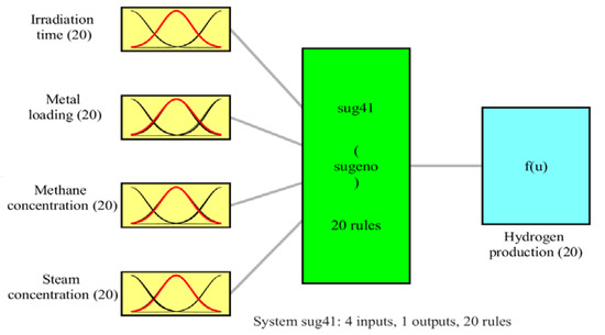 - A consistent ANFIS model was established based on measured data of the photocatalytic methane reforming process for hydrogen production.