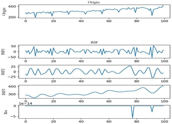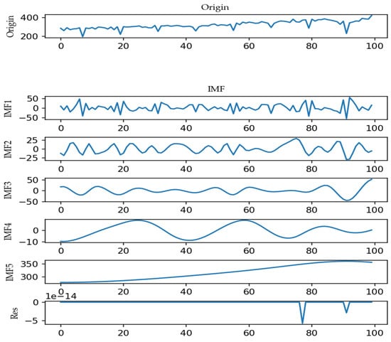 During screening, the intrinsic mode components that are smaller than the contribution rate threshold are discarded, and the intrinsic mode components larger than the contribution rate threshold are extracted for the reconstruction and aggregation of time series data. Finally, by data feature-driven reconstruction, each mode is further reconstructed and aggregated into some valuable components.