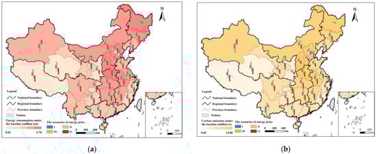 In order to further investigate the results, simulations of energy consumption and carbon emissions at province-level are pictured in Figure 1a,b.