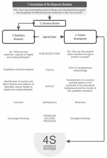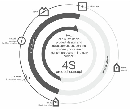 The paper is structured as follows: a description of the reasons that justify the need for the research and of the current situation of international tourism is followed by a presentation of the trends of new tourism such as safety, smart technology, and sustainability, based on the literature (Section 2). In the Methodology section, the research design (the formulation of research questions and the explanation of the qualitative research method) is described in detail. With the interdisciplinary approach of the scientific fields that our research is rooted in, we have identified six dilemmas that helped us formulate our research question. Our research question is: “How can sustainable product design and development support the prosperity of different tourism products in the new normal?” (Section 3). The next section discusses the results, for which the groundwork is laid by the findings of the qualitative research, and the 4S product concept is created. The idea behind the product is presented both from a product designer’s and a user’s perspective, supported by theoretical examples (Section 4). The paper is then closed with the conclusions that can be drawn from our research, the description of the recommended managerial implications (Section 5), and a review of the limitations of the study and of the possible directions for future research (Section 6).
