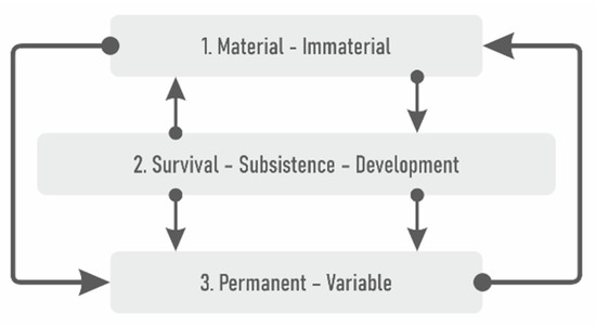 During the ritual of designing, the sequential development process of the listed dimensions is carried out in an unfixed order, in an iterative way: investigation of (1) Material–Immaterial qualities, the assessment of how (2) Survival–Subsistence–Development aspects emerge in the phenomenon, and the examination of (3) Permanent–Variable elements. This way, during the design phase, our research findings manifested in the form of a theoretical product concept, providing a basis for practical value creation as well.