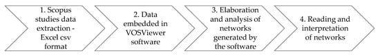 Figure 2 presents the bibliometric analysis steps. At the first step, the data of the 69 publications were retrieved from the Scopus platform in the Excel format (.csv). In the second stage, the .csv file was incorporated into the VOSviewer software for running the analyses. For ensuring the reliability of the data, a data cleaning was conducted, and some references were formatted so that there would be no duplication of authors’ names later. At this step, a VOSviewer Thesaurus (.txt) file was produced and used to format the data and to avoid any duplicate results during network analysis. The third stage comprised the elaboration and analysis of networks, aiming to develop the bibliometric review. In the last stage, works with greater impact on the network map were read in full.