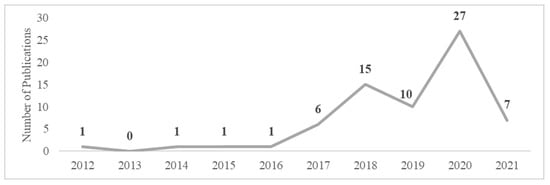 The bibliometric analysis consists of “the application of mathematics and statistical methods to books and other media of communication” [53] (p. 349). In summary, it is a quantitative analysis of scientific publications, through which academic literature in relation to a given topic is mapped [54]. The bibliometric method analyses the literature observing the academic performance and mapping the relevant publications, authors, institutions and terms in a way that they can be interpreted and inferences can be made [55,56]. Besides, it applies rigor to the analysis and increases the objectivity of the research. Thus, the present work used the bibliometric analysis to synthesize the preexisting studies, map the scientific research field, and understand the stage of development of the theme.