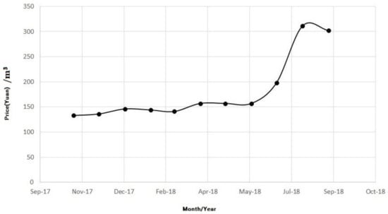 Figure 3 indicates that the river sand price jumped by almost 227% over 11 months from 2017 to 2018 in Shenzhen. This rise in construction sand price is attributed to the imbalance between the supply and demand of sand. It is estimated that the amount of sand required for the concrete mixing station in Guangdong Province in 2018 was 68.4 million cubic meters, while the planned mining volume of river sand was only 3.933 million cubic meters (Statistical yearbook of Guangdong, 2018). Although the continued increase in infrastructure investment in Guangdong Province will simultaneously increase the demand for sand in the construction industry, there still remains a large gap between the supply and demand of sand, resulting in a sharp rise in the sand price.