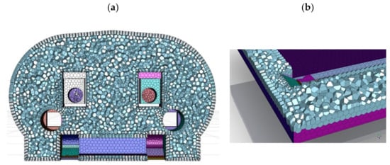 Computational mesh at (a) vertical cross-section of the combine and (b) near the mine wall.