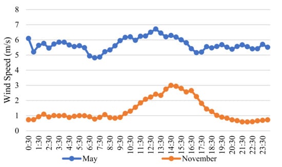 Profile of the months with the highest and lowest of average wind speed [47,48].