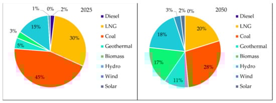 Energy mix of the interconnected Ambon–Seram system in 2025 and 2050.