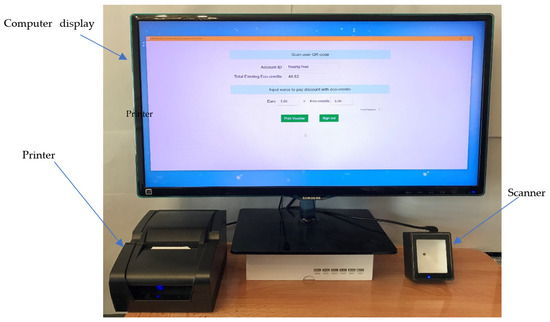 As described in Section 3.2, with the mobile application, consumers can conduct eco-incentive activity by spending their eco-credits to receive discounts on purchasing products in the shop or receive free cinema/theatre/museum tickets from the ticket agency, where the staff operates the software–user interface of the eco-incentive system and prints the incentive receipts for the consumers. The detailed process of receiving incentives can be found in the mobile application, as shown in Figure 9.