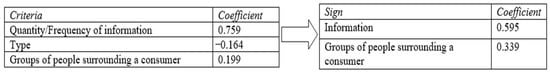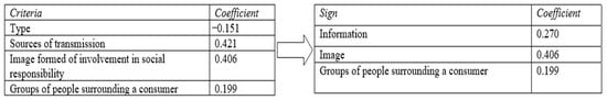 The weights of each variable were determined, and the coefficients of signs were calculated in the same way after determining the coefficients of criteria (see Figure 2).