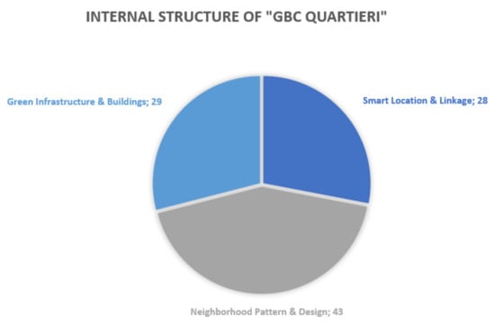 GBC Quartieri is composed of three main categories: smart location and linkage, neighborhood pattern and design, and green infrastructure and buildings.
