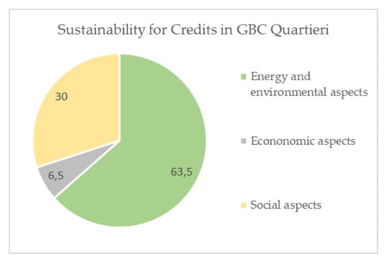GBC Quartieri pays more attention to the energy and environmental aspects but offers less importance to social aspects than ITACA Scala Urbana. The economic aspects in both rating systems are hardly considered and are always connected to the energy aspects.