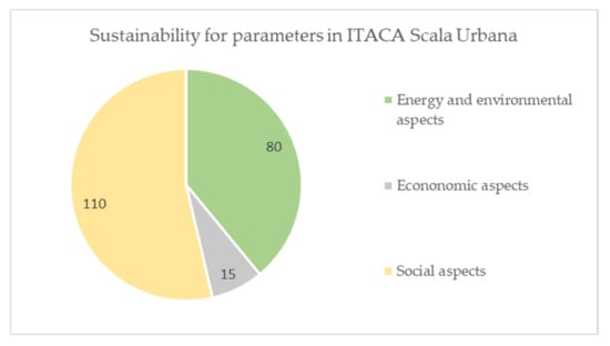 In Italy, an Italian interregional group in the Institute for Transparency of Contracts and Environmental Compatibility developed the “ITACA Scala Urbana”. The purpose of this project is to envelope a complete, open, accessible, flexible, and contextualized instrument for the evaluation of neighborhood plans with performance indicators [32].