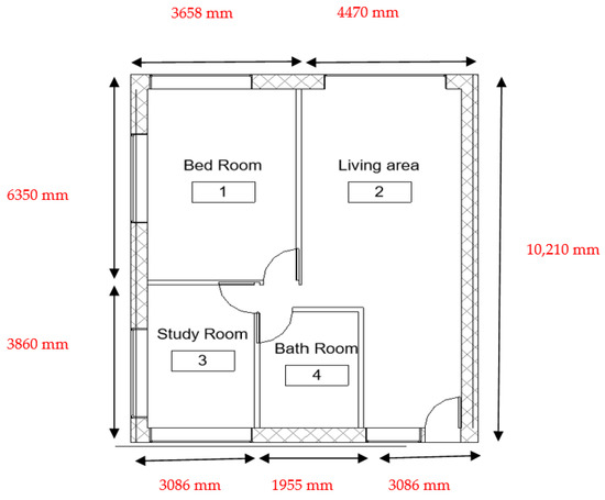 The floor plan of the building consisted of 4 spaces, as shown in Figure 4.
