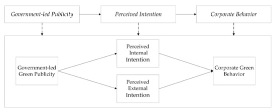 To sum up, this study constructs a relationship model of government-led green publicity, corporate green perception, and corporate green behavior, as shown in Figure 3.