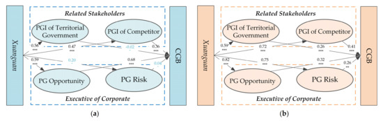 Therefore, we can conclude that: government-led green publicity can positively influence corporate green behavior, and it is mediated by perceived internal intention and perceived external intention. That is, Hypotheses 1, 2, 3, and 4 are confirmed.