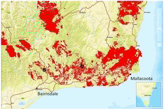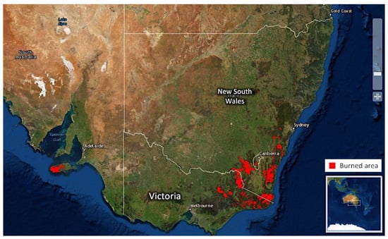 - State Government of Victoria. “Past Bushfires”, Forest Fire Management Victoria. 2020. Available online: https://www.ffm.vic.gov.au/history-and-incidents/past-bushfires (accessed on 1 October 2021).