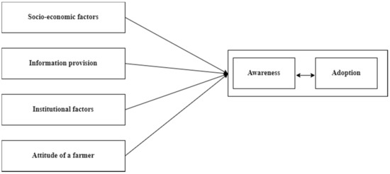 Conceptual framework of a farmer’s awareness and adoption decision. Source: The authors’ formulation based on the existing literature.
