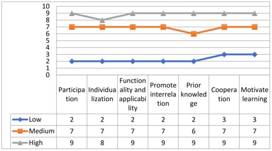 From a holistic view, the proposal of an interdisciplinary approach in TEL research suggests several ad hoc benefits because it implies effective collaboration between interdisciplinary teams, education, pedagogy, computer science, design, and media technology [23,24], which consequently allow the application of methodological principles of participation, individualization, interrelation, motivation, and applicability in education in virtual classrooms.