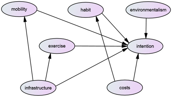 In the previous research base, various influencing factors of cycling adoption have been studied [15,16,17,18,19,20]. However, most of these influencing factors are studied without considering their interactions with each other. This research gap would be filled by comprehensively studying the influencing factors of the intentions in the newly established model.