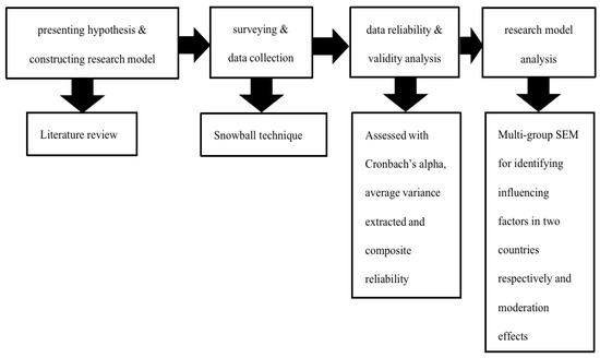 Generally, for doing the empirical research, the data collection was firstly conducted and it was followed by analysis of the measurement model as well as hypothesis testing. The flow chart of research methodology is shown in Figure 2.