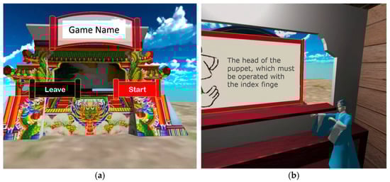 Inside and outside views of open-air theatrical stage (the reality of a VR game). (a) Game login interface, (b) Game teaching screen.