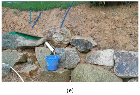 Due to the engineering geological conditions of the site slope, five test areas (Zone I, Zone II, Zone III, Zone IV, and Zone V) were selected. Artificial water spray was used to simulate rainfall (rainfall intensity—125 mm·min−1, rainfall duration—1 min and 30 s), and the on-site anti-erosion test was carried out on the soil slope. By comparing the amount of erosion under various working conditions, the anti-erosion abilities of the slopes were analyzed (Table 2 and Table 3).